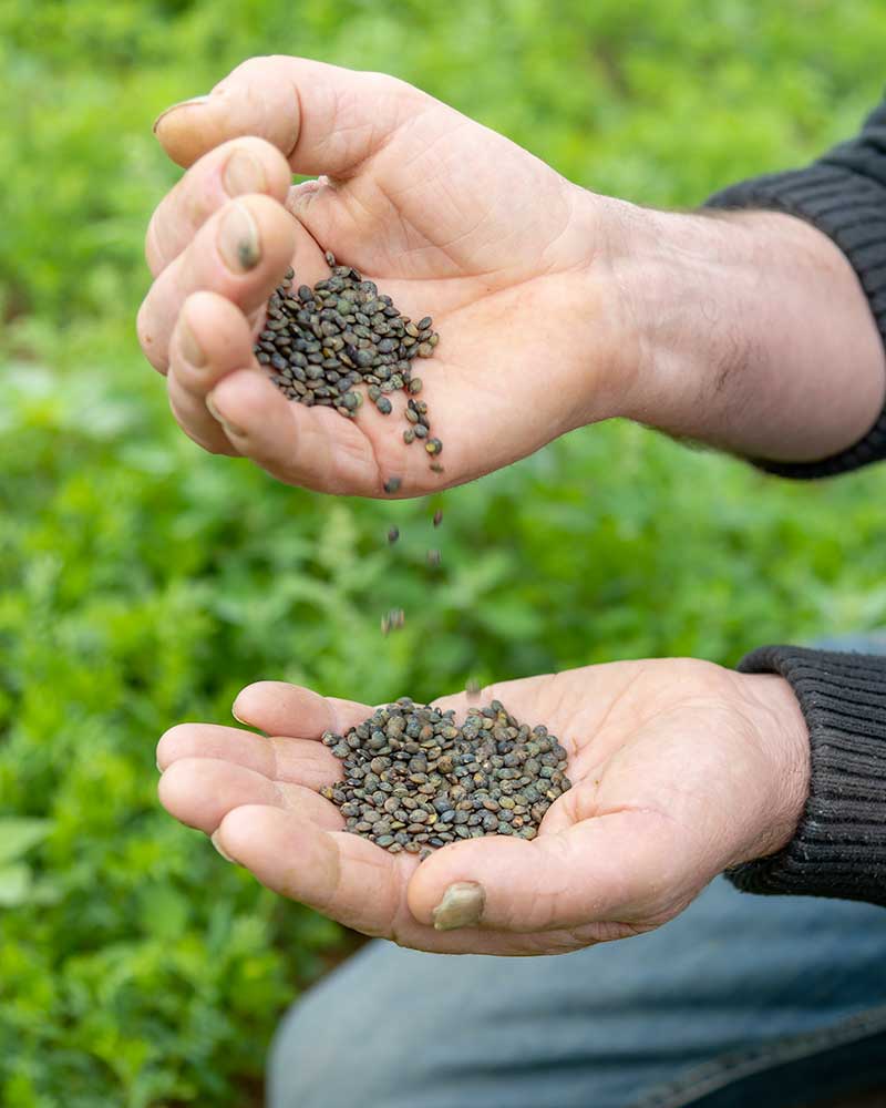 Nous cultivons principalement des lentilles vertes et des pois chiches. Les cultures de légumes secs sont délicates. Elles sont, sous nos climats, souvent difficiles à semer et soumises au stress hydrique. Nous sommes dans une logique d’expérimentation et de développement pour garantir la production.
